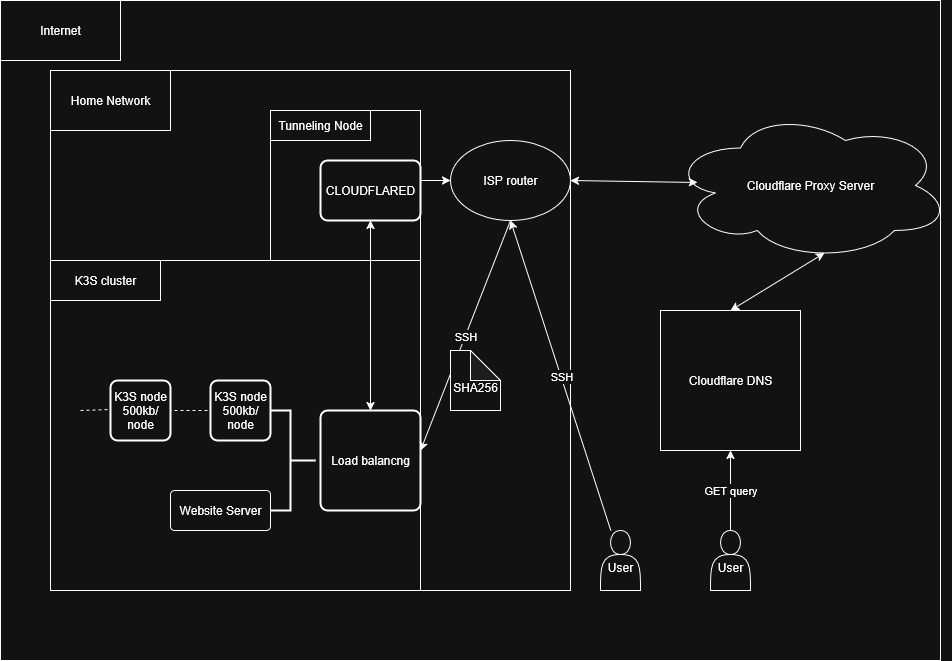 >>> After setting up a SHA256 SSH access to the machines I could use and manage it from anywhere. I have decided to use a Reverse Proxy using Nginx and after also installing a Cloudflare Proxy for doubled security and setting up DNS for the server I can properly proclaim my website at https://ljzcvs.dev! Finally having control over my servers feels liberating, as no longer do I have to dread accidental AWS credit drainage.